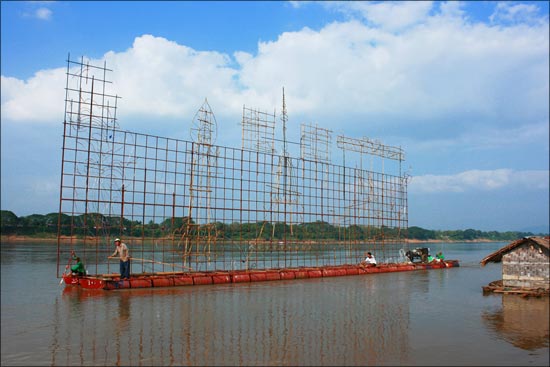 ปัจจุบัน นิยมออกแบบให้เข้ากับเหตุการณ์ เมื่อได้ภาพก็เริ่มทำลวดลายของภาพ โดยส่วนที่จะก่อให้เกิดลายนั้น เป็นไม้ไผ่อันเล็ก ๆ และลวดคัดให้เป็นลาย ตามที่ต้องการ แล้วใช้ผ้าจีวรเก่า ๆ มาฉีกเป็นริ้ว ๆ ชุบน้ำมันยาง (ปัจจุบัน เปลี่ยนมาเป็นใช้น้ำมันโซล่า (ดีเซล)) เมื่อชุบแล้วก็นำไปตากนาน 6 – 7 วัน หรือ ไม่ตากก็ได้ แล้วนำมาพันกับเส้นลวดจนทั่วและมีริ้วผ้าเส้นเล็ก ๆ วางแนบ เป็นแนวยาว ทำหน้าที่เป็นสายชนวน เมื่อเวลาจุดไฟ เมื่อเรียบร้อย นำไปปักไว้ กลางแพ โดยผูกติดกับไม้ไผ่ขนาดใหญ่ ที่เป็นฐาน เมื่อถึงเวลาก็จุดไฟ แล้วปล่อย ไปตามแม่น้ำ